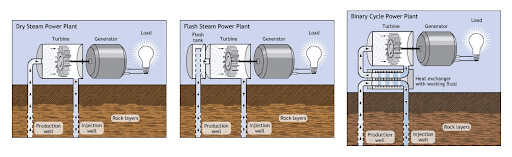 Presently, there are three basic types of geothermal power plants: